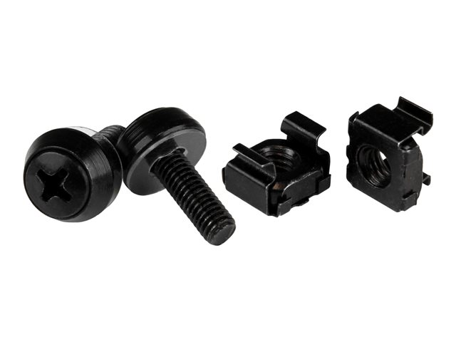 CABSCREW1032 - StarTech.com 50 Pack 10-32 Server Rack Cage Nuts and Screws with Washers, Rack Mount Hardware Kit, Network/IT Equipment Cabinet Clip/Captive Nuts & Bolts for Square Rack Holes, Black, TAA